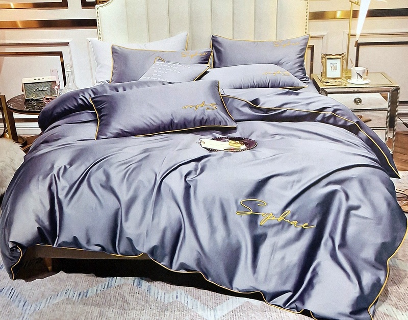 * kvalitatīva gultas veļa ar luksusa izskatu- izšūti uzraksti, izsmalcināta dekoratīvās apdares maliņa